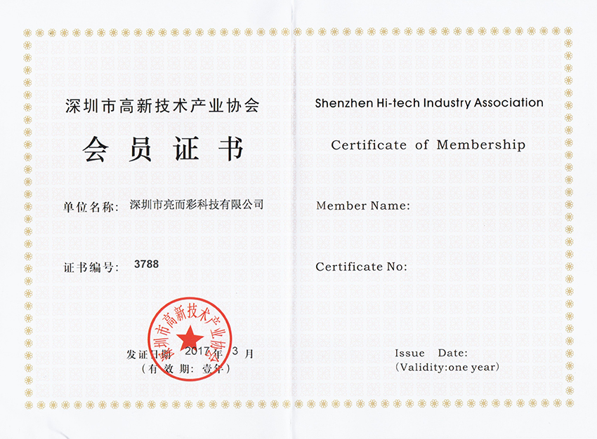 深圳市高新技術產業(yè)協(xié)會會員證書
