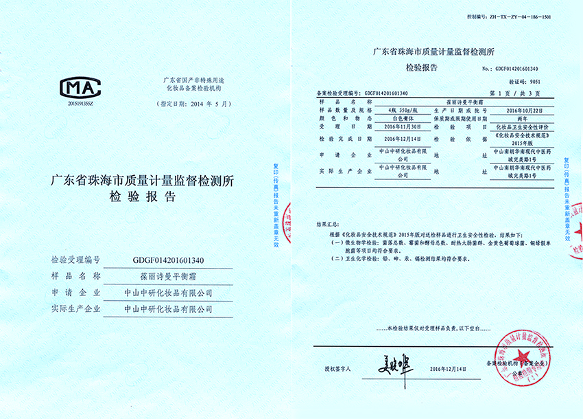 葆麗詩曼平衡霜檢測報(bào)告