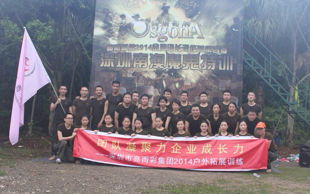 2014年6月6日到6月7日,亮而彩集團所有家人一起到深圳南澳進行一場兩天一夜的魔鬼特訓,這是一場蛻變的的磨煉。